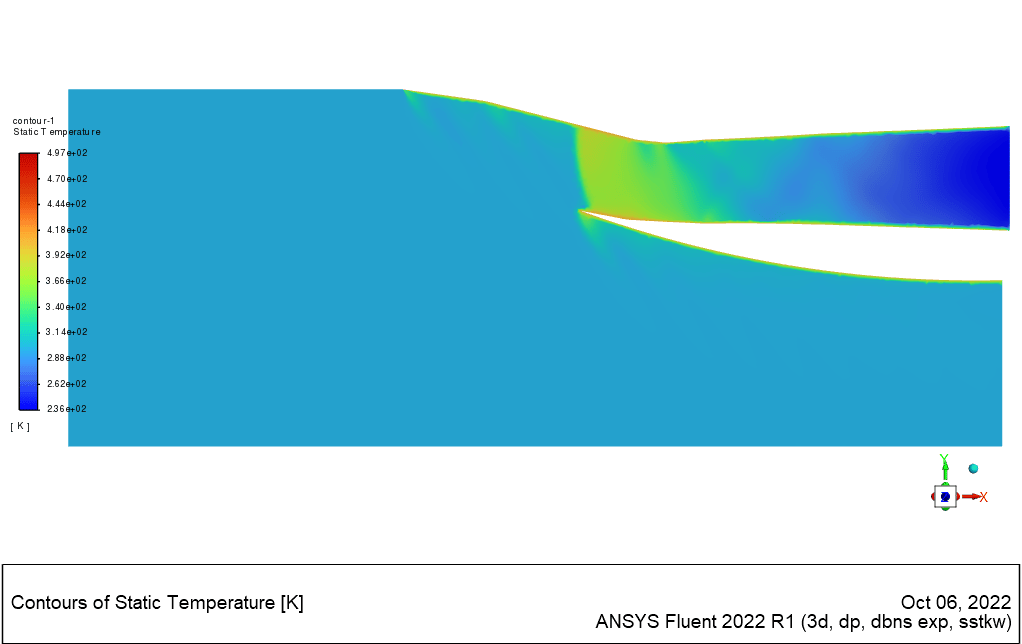 در این شبیه سازی از حلگر مبتنی بر چگالی (Density-based Solver) استفاده شده است. برای مدلسازی آشفتگی، از مدل K-omega SST استفاده شد. در این شبیه سازی ورودی در نقطه عملیاتی با سرعت 1.4 ماخ شبیه سازی شده است.